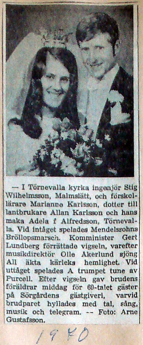 | Wilhelmsson, Stig, Malmslätt med maka Marianne Karlsson, dotter till Allan och Adela Karlsson, Törnevalla | 1970 | ||