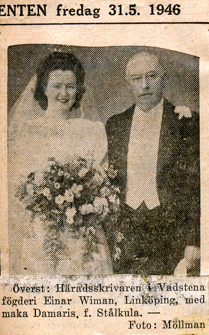 | Wiman, Einar, häradsskrivare, Linköping med hustru Damaris Stålkula. | 1946 | ||