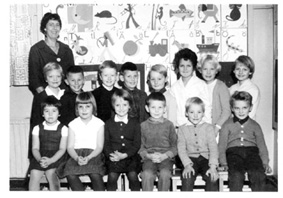 Sigbritt Engdahls klass 1 1961-1962. Vi höll till i småskolan vid kyrkmuren, det som nu är församlingshem.