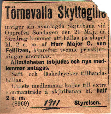 | 1911-05-20 | Corren? | Skyttegillets invigning av skjutbanan |