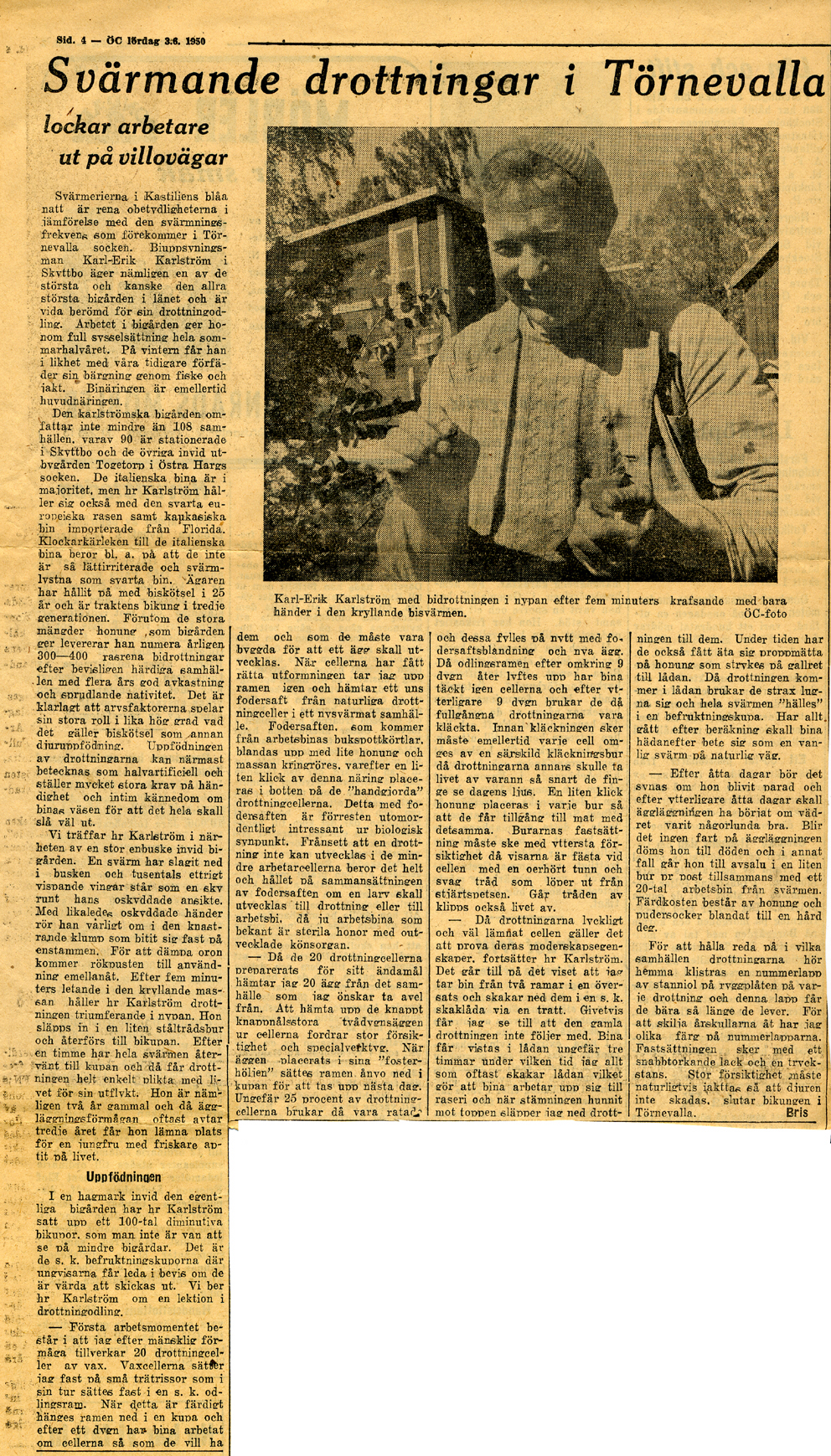 | 1950-06-03 | Corren | Karlström visar upp sina bin |
