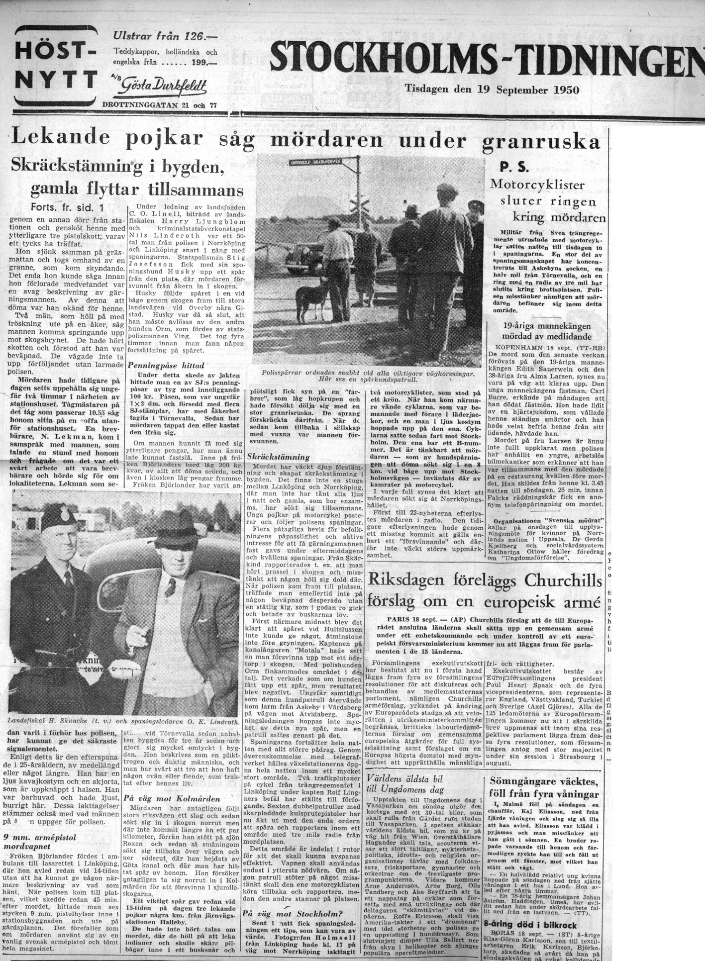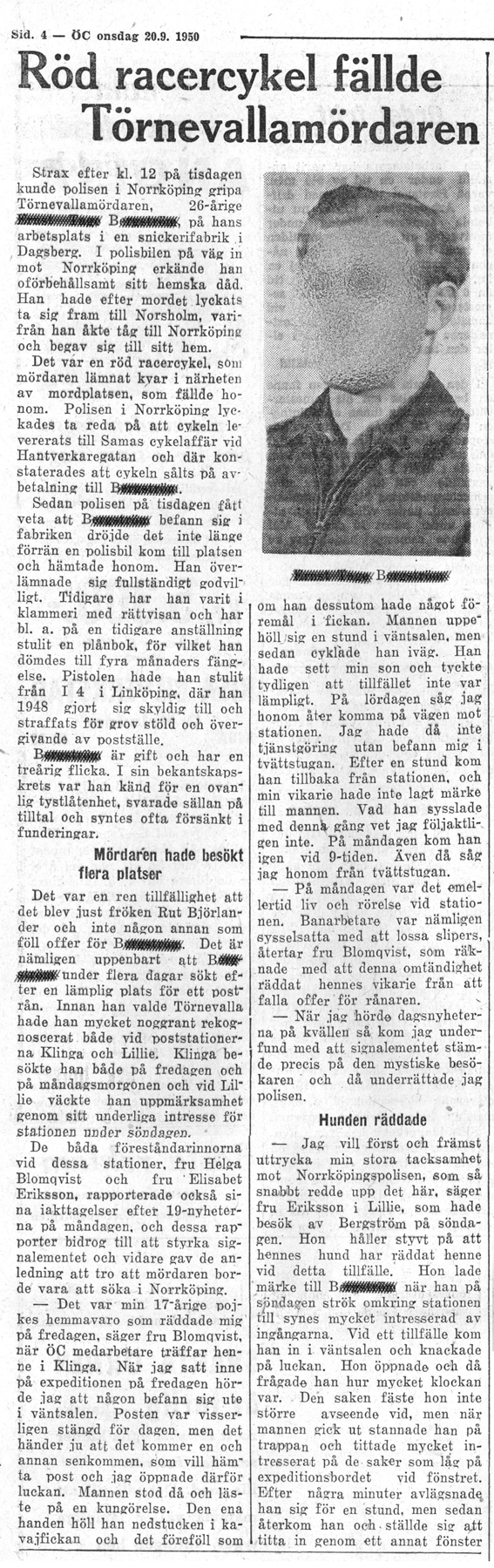| 1950-09-29 | Corren | Ruth Björlanders mördare |