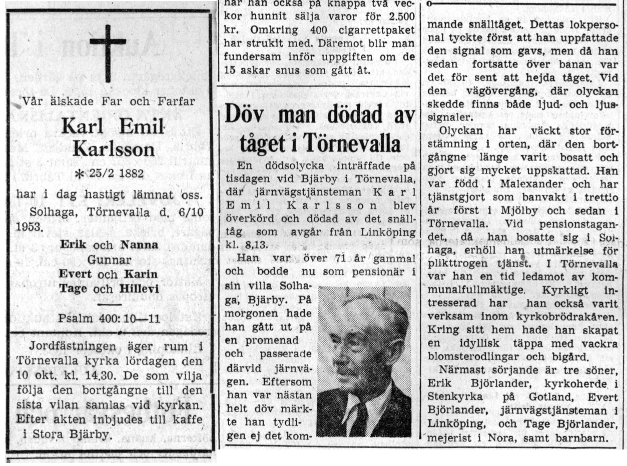 | 1953-10-07 | Corren | Dödsolycka vid järnvägen Bjärby |