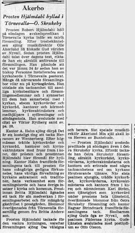 | 1958-08-11 | Corren | Hjälmdahls avskedspredikan |