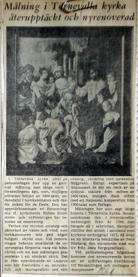 | 1961 mars | Corren | Gammal kyrkomålning renoverad |