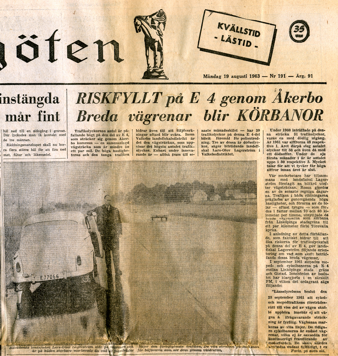 | 1963-08-19 | Östgöten | Riskfyllda vägrenar på E4an 1 |