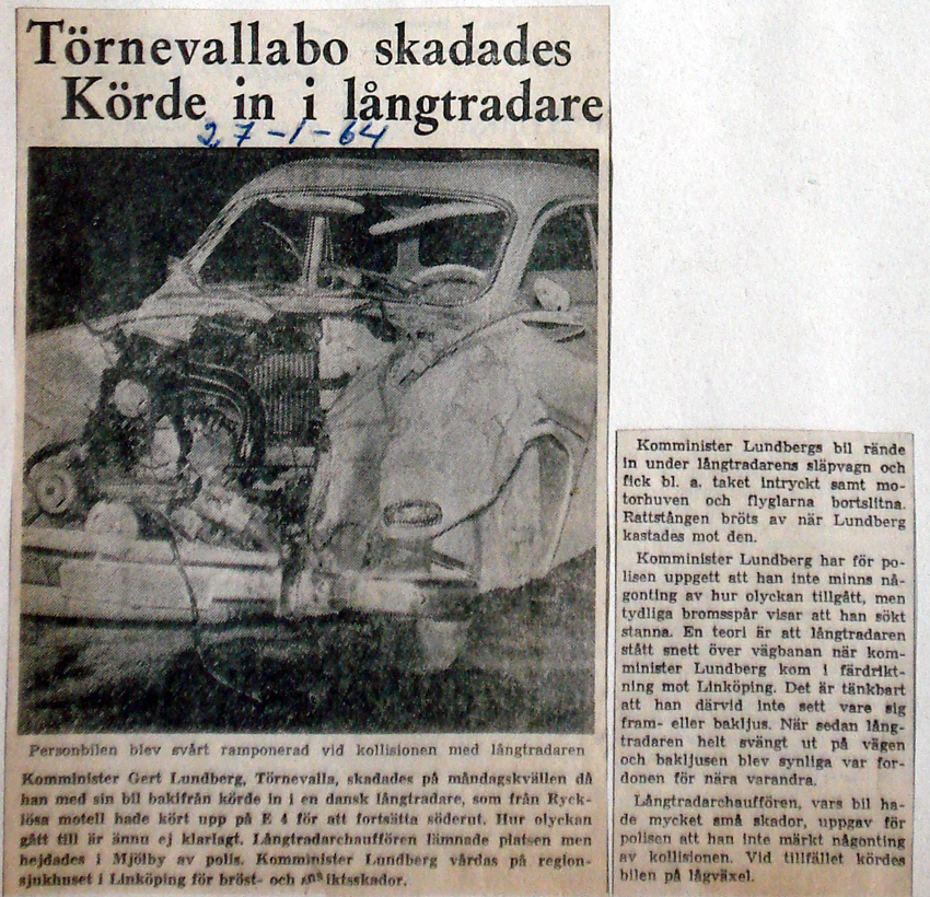 | 1964-01-27 | Corren | Komminister Lundberg i krock |