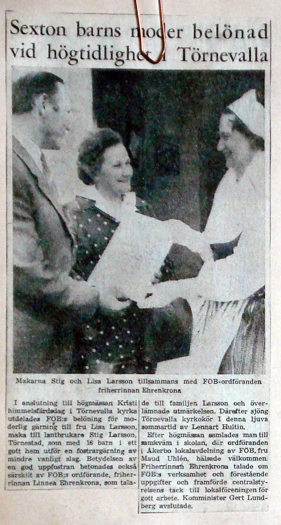 | 1966 maj | Corren | Lisa Larsson firad som "Årets mamma" |