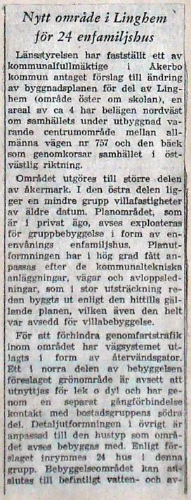 | 1967 januari | Corren? | Nytt område enfamiljshus planeras |