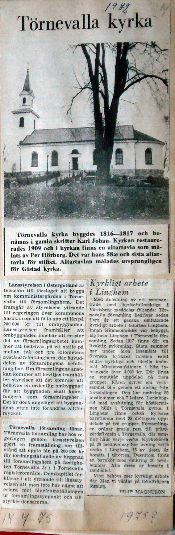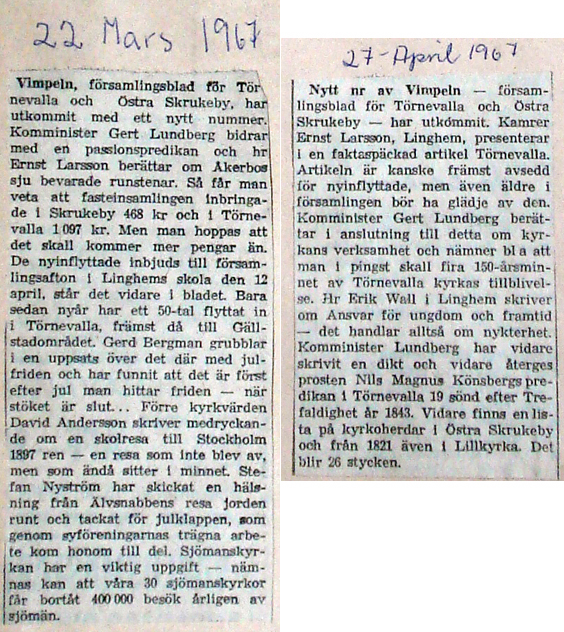| 1967 våren | Corren? | Församlingsbladet Vimpeln, någon som har dem kvar?? |