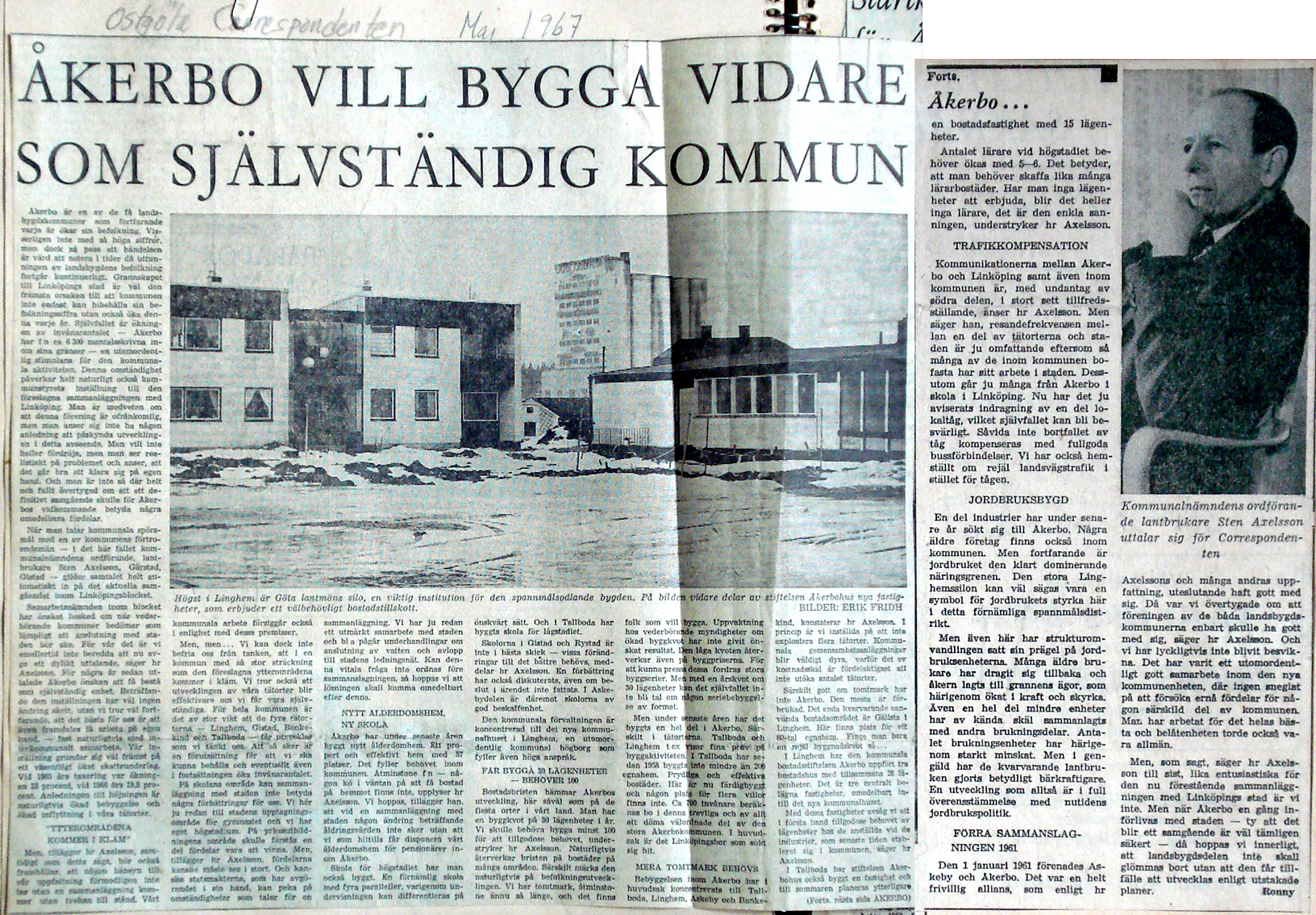 | 1967 maj | Corren | Åkerbo kommuns framtidsplaner |