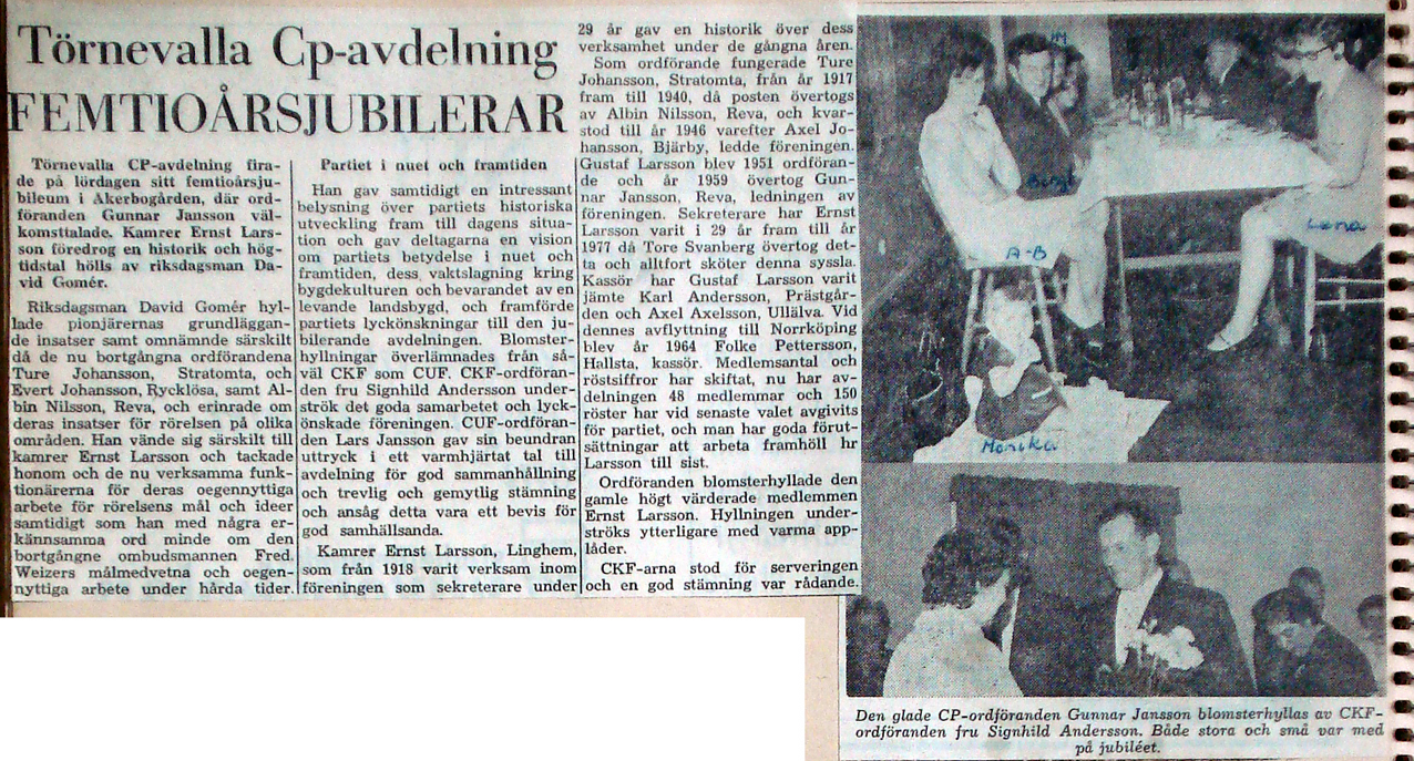 | 1967 november | Corren | Cp-avdelningen 50-årsjubilerar |