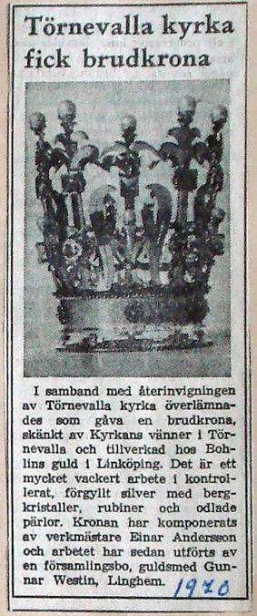 | 1970 | Corren | Kyrkan har fått en ny brudkrona |