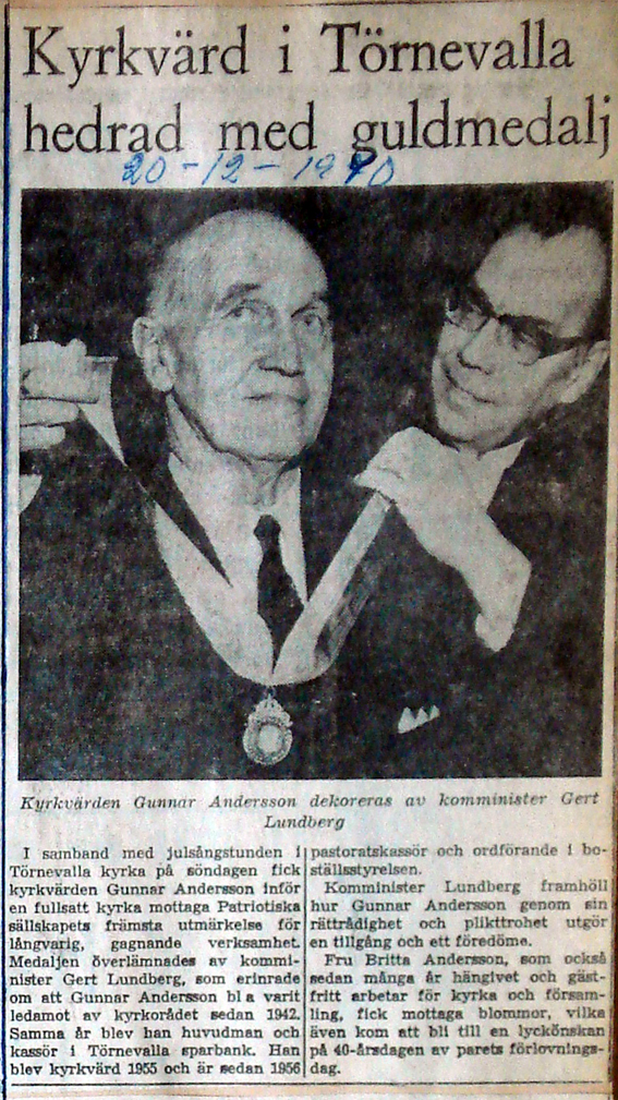 | 1970-12-20 | Corren | Kyrkvärd Gunnar Andersson får medalj |