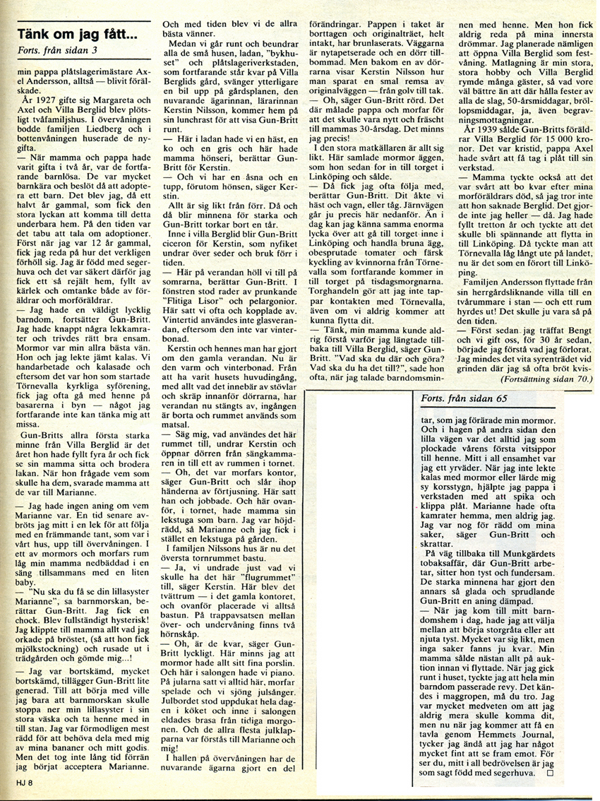 | 1981-02-18 | Hemmets Journal | Gun-Britt Svensson återvänder till barndomshemmet Berglid 1 |