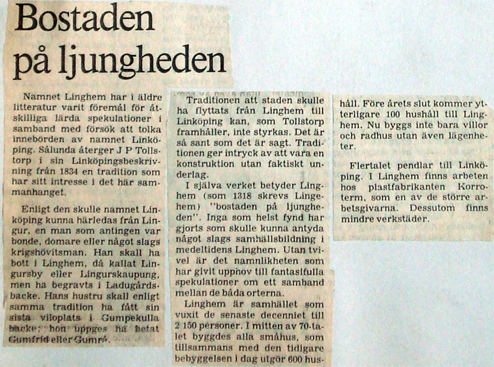 | 1983-02-23 | Corren | Om namnet Linghem |