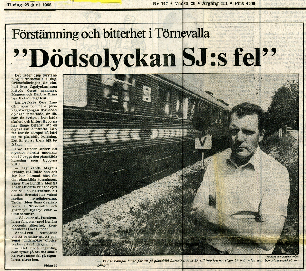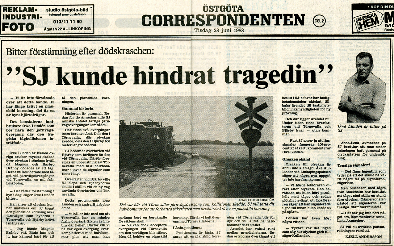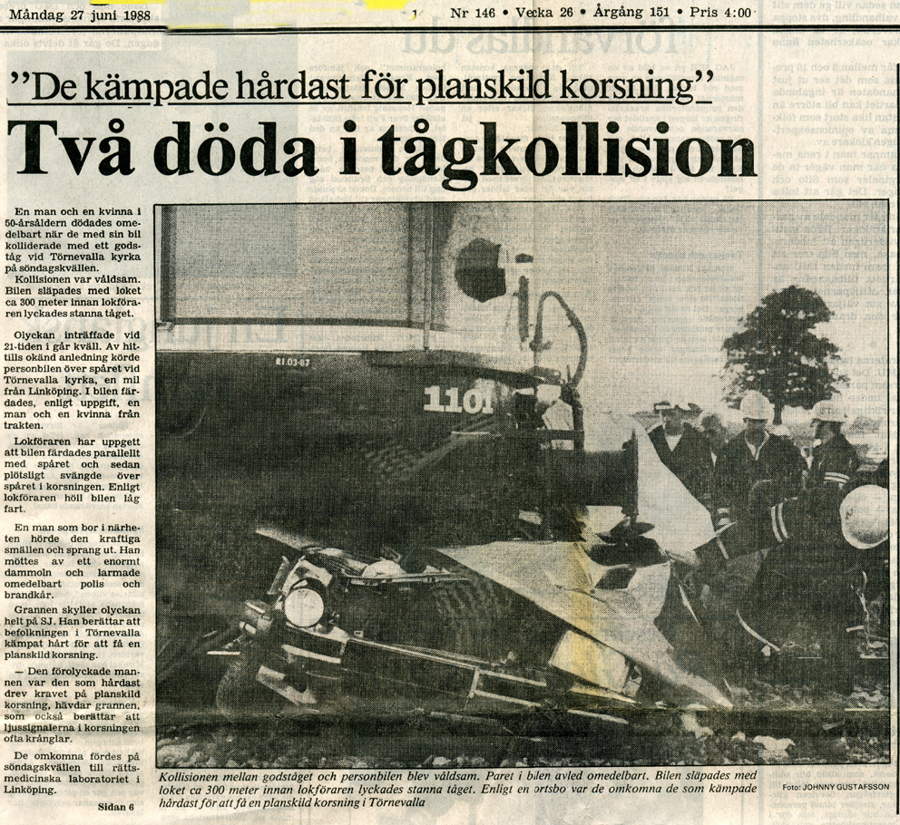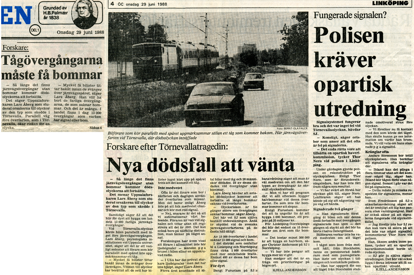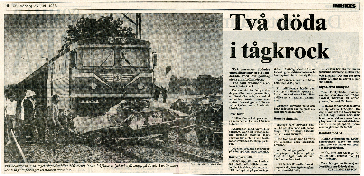 | 1988-06-29 | Corren | Tågolycka vid Revaövergången onsdag |